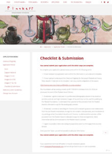 Once all the previous steps are complete, the “Checklist & Submission” step must be completed to finalize the application. It requires each candidate to agree to the following: