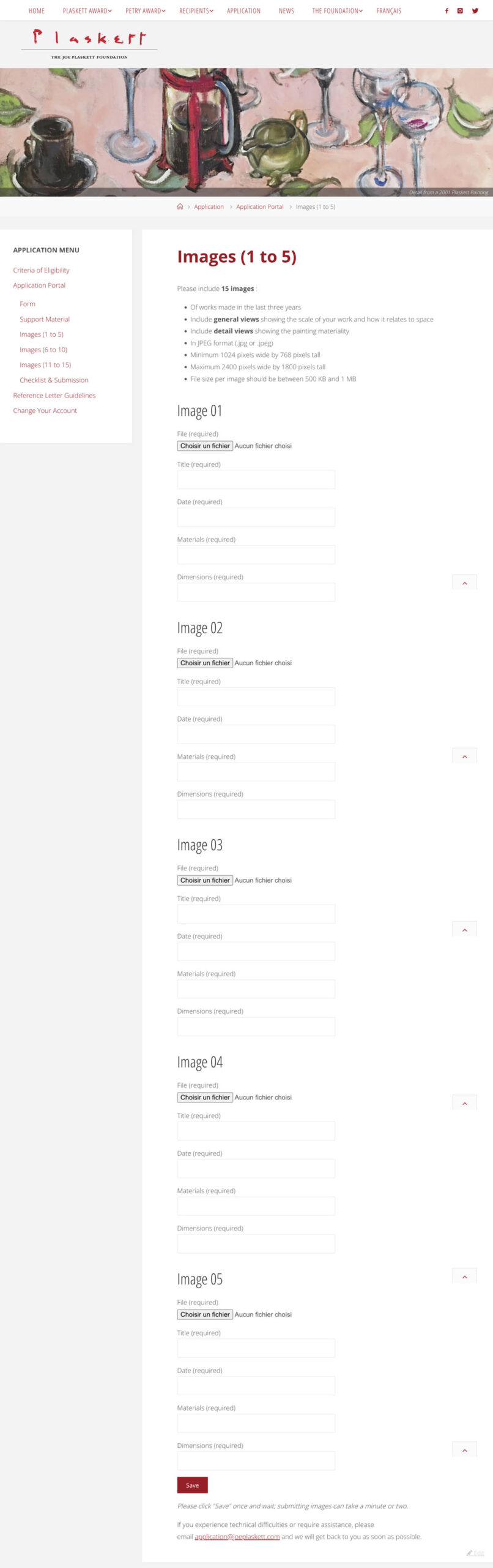 In the Support Material section, candidates have to include a brief Artist Statement (maximum 2000 characters, around 300 words) that outlines key aspects of their current artistic production. In addition, they should include a plan on how they use the Plaskett Award to develop their artistic practice (maximum 2000 characters, around 300 words). Finally, candidates are expected to submit their artist resume (maximum 3 pages, PDF format).